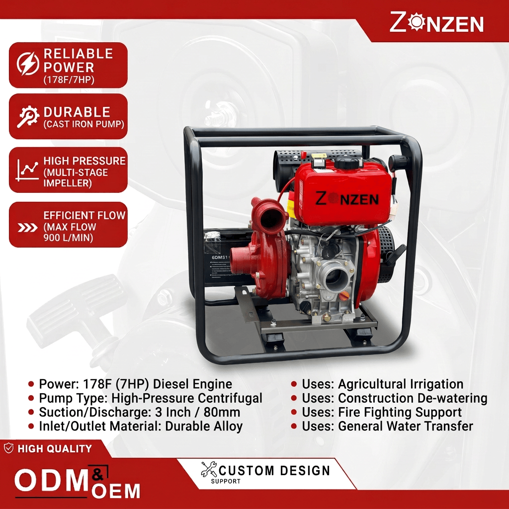 Diesel Centrifugal Pumps 2 Inch 7HP (178F) for Agricultural Irrigation | ZONZEN