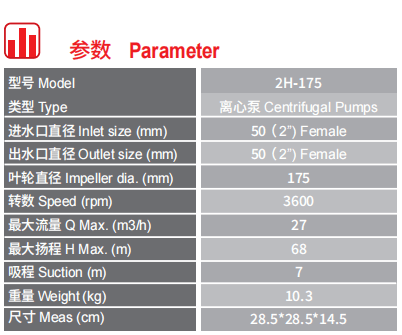 | Inlet and outlet diameter(mm) | 50mm (2″) |